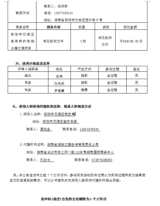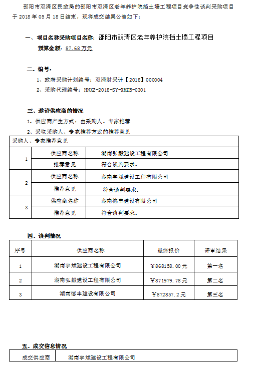 邵陽市雙清區(qū)老年養(yǎng)護(hù)院擋土墻工程 競爭性談判成交公告