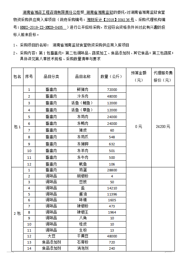 湘南監(jiān)獄2018年6月至2019年5月湘南監(jiān)獄犯人食堂生活物資采購員項目入圍采購公開招標公告