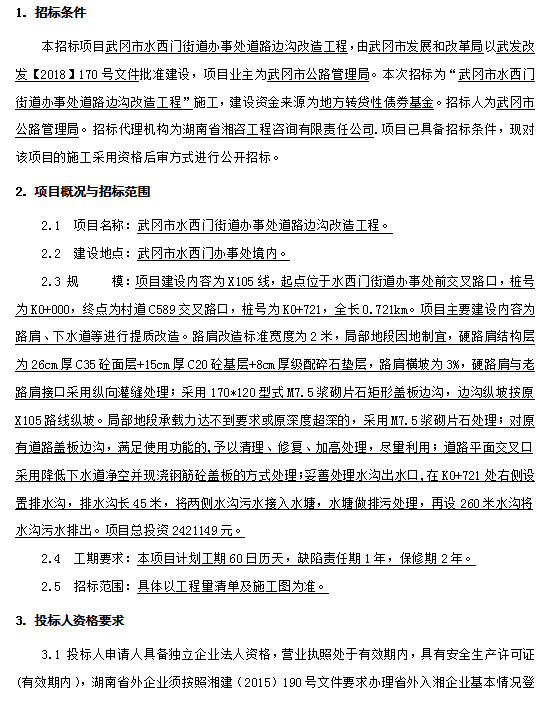 武岡市水西門街道辦事處道路邊溝改造工程 施工招標公告