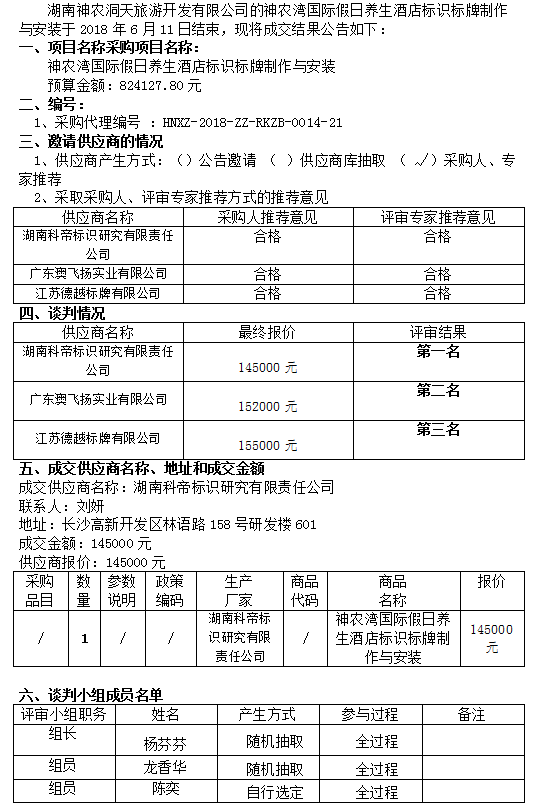 神農(nóng)灣國(guó)際假日養(yǎng)生酒店標(biāo)識(shí)標(biāo)牌制作與安裝 競(jìng)爭(zhēng)性談判成交公告