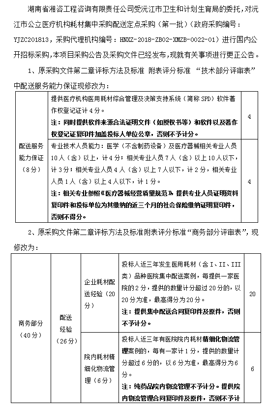 沅江市公立醫(yī)療機(jī)構(gòu)耗材集中采購(gòu)配送定點(diǎn)采購(gòu)(第一批) 更正公告