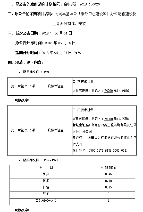 會同縣基層公共服務(wù)中心建設(shè)項目 辦公配套建設(shè)及上墻資料制作、安裝 澄清、更正公告