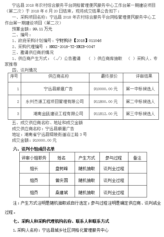 寧遠(yuǎn)縣2018年農(nóng)村綜合服務(wù)平臺(tái)網(wǎng)格管理便民服務(wù)中心工作臺(tái)第一期建設(shè)項(xiàng)目(第二次)競(jìng)爭(zhēng)性談判成交結(jié)果公告