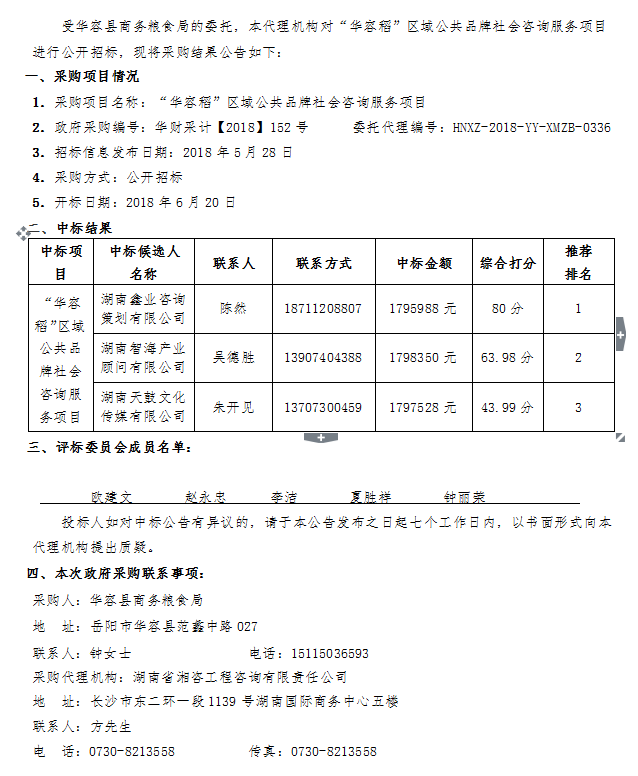“華容稻”區(qū)域公共品牌社會(huì)咨詢服務(wù)項(xiàng)目公開(kāi)招標(biāo)中標(biāo)公告