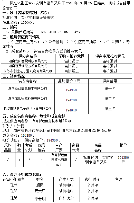 標(biāo)準(zhǔn)化鉗工專業(yè)實(shí)訓(xùn)室設(shè)備采購競(jìng)爭(zhēng)性談判成交公告