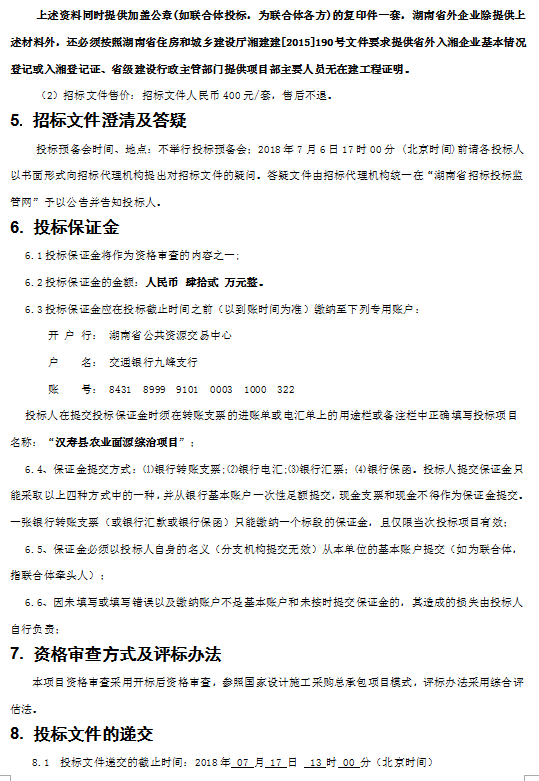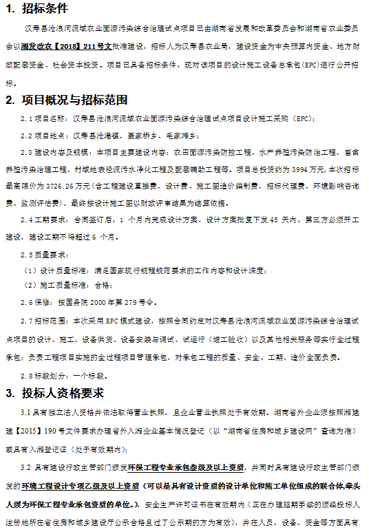漢壽縣滄浪河流域農(nóng)業(yè)面源污染綜合治理試點項目設(shè)計施工采購 (EPC)總承包招標公告