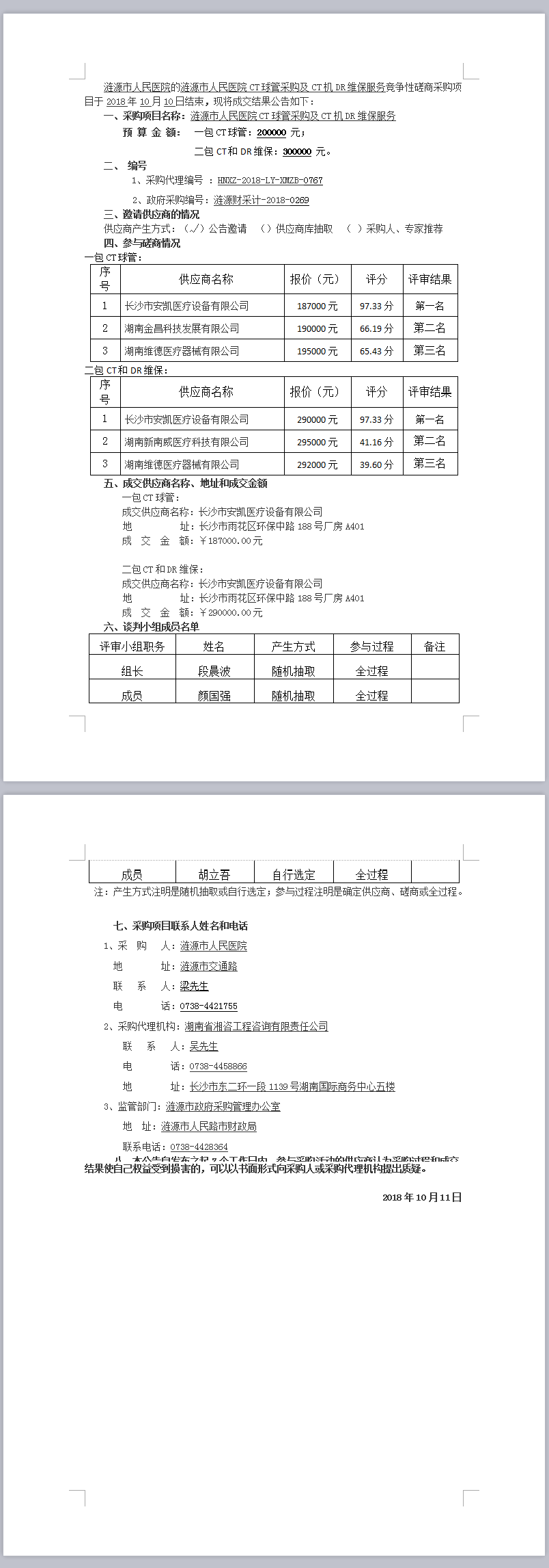 漣源市人民醫(yī)院CT球管采購(gòu)及CT機(jī)DR維保服務(wù)競(jìng)爭(zhēng)性磋商成交結(jié)果公告