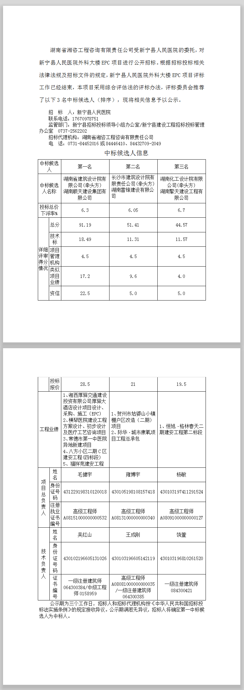 新寧縣人民醫(yī)院外科大樓EPC項目投標(biāo)信息公示表