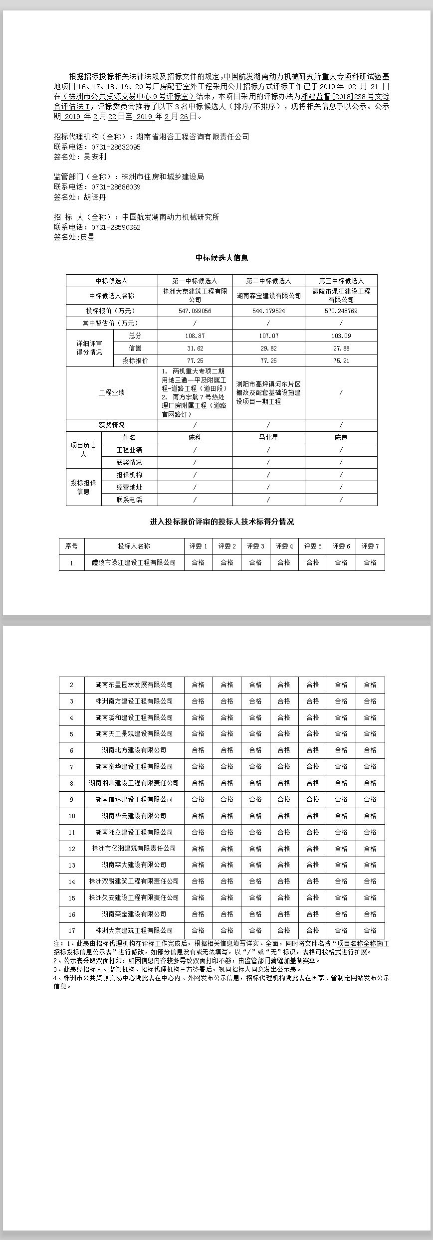 中國(guó)航發(fā)湖南動(dòng)力機(jī)械研究所重大專項(xiàng)科研試驗(yàn)基地項(xiàng)目16、17、18、19、20號(hào)廠房配套室外工程招標(biāo)投標(biāo)信息公示表