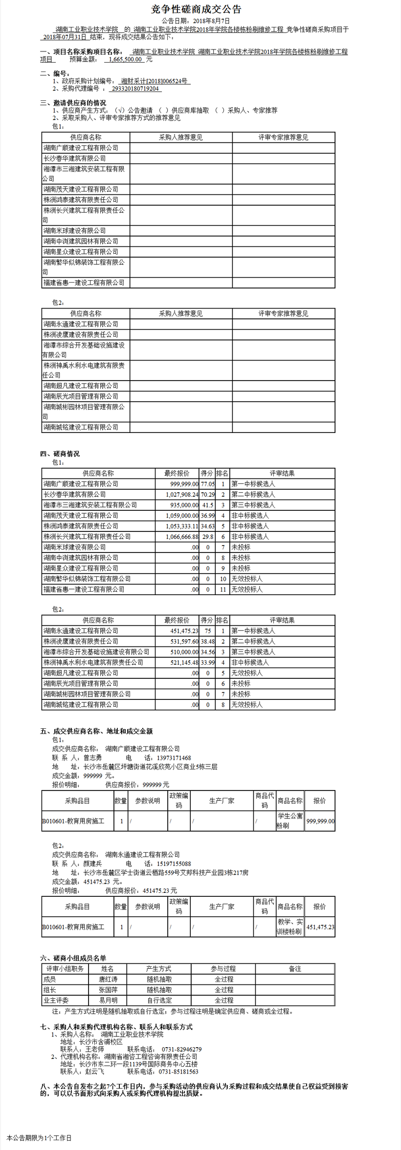 湖南工業(yè)職業(yè)技術(shù)學(xué)院湖南工業(yè)職業(yè)技術(shù)學(xué)院2018年學(xué)院各樓棟粉刷維修工程項(xiàng)目競(jìng)爭(zhēng)性磋商成交公告
