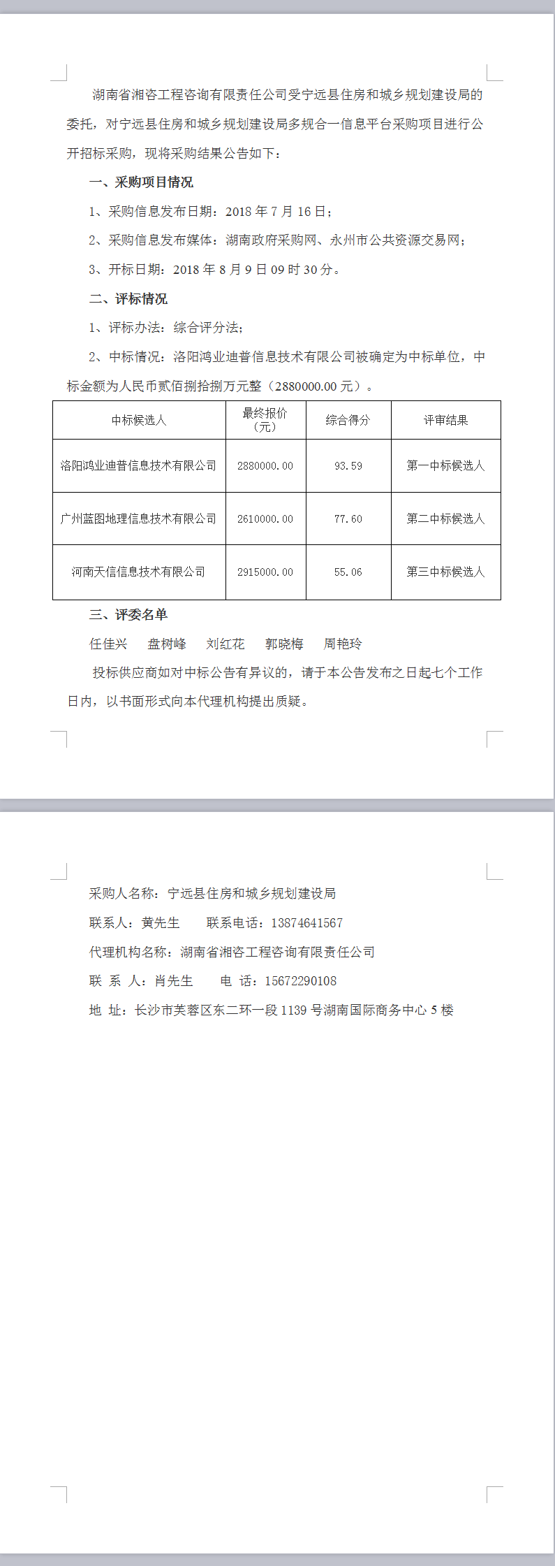 寧遠(yuǎn)縣住房和城鄉(xiāng)規(guī)劃建設(shè)局多規(guī)合一信息平臺采購項(xiàng)目中標(biāo)公告