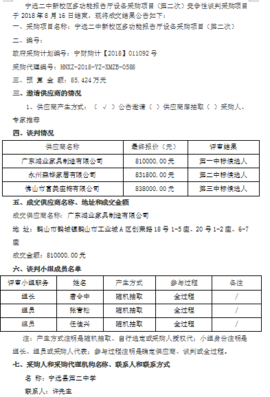 寧遠二中新校區(qū)多功能報告廳設備采購項目(第二次)競爭性談判成交公告
