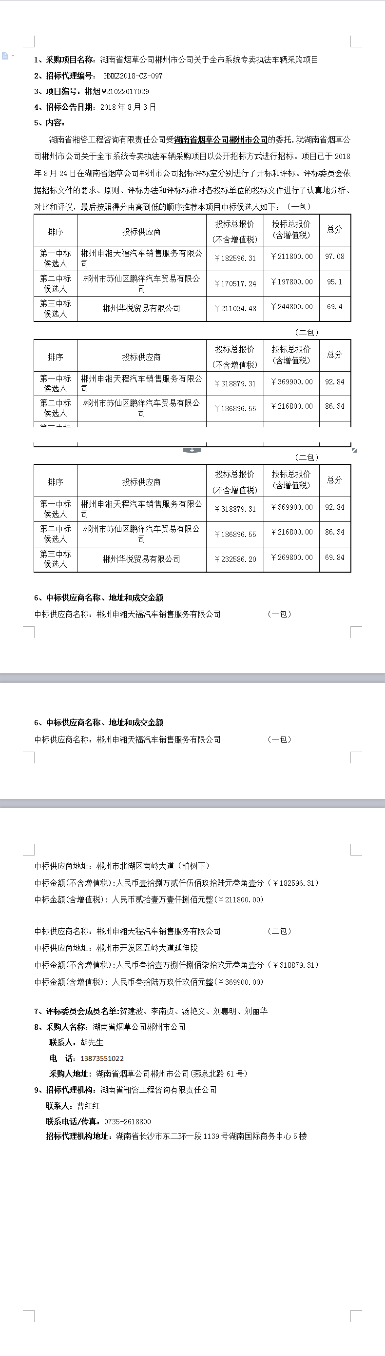 湖南省煙草公司郴州市公司關(guān)于全市系統(tǒng)專賣執(zhí)法車輛采購項(xiàng)目中標(biāo)結(jié)果公示