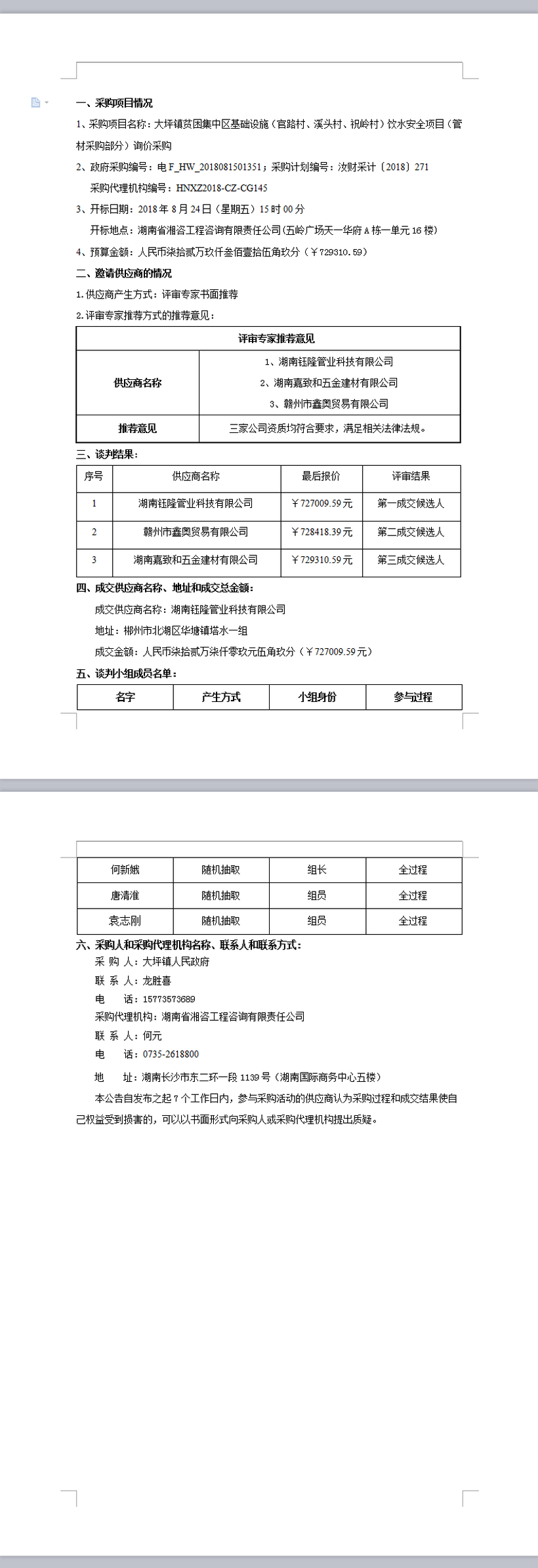 大坪鎮(zhèn)貧困集中區(qū)基礎(chǔ)設(shè)施(官路村、溪頭村、祝嶺村)飲水安全項(xiàng)目(管材采購部分)詢價(jià)采購成交公告