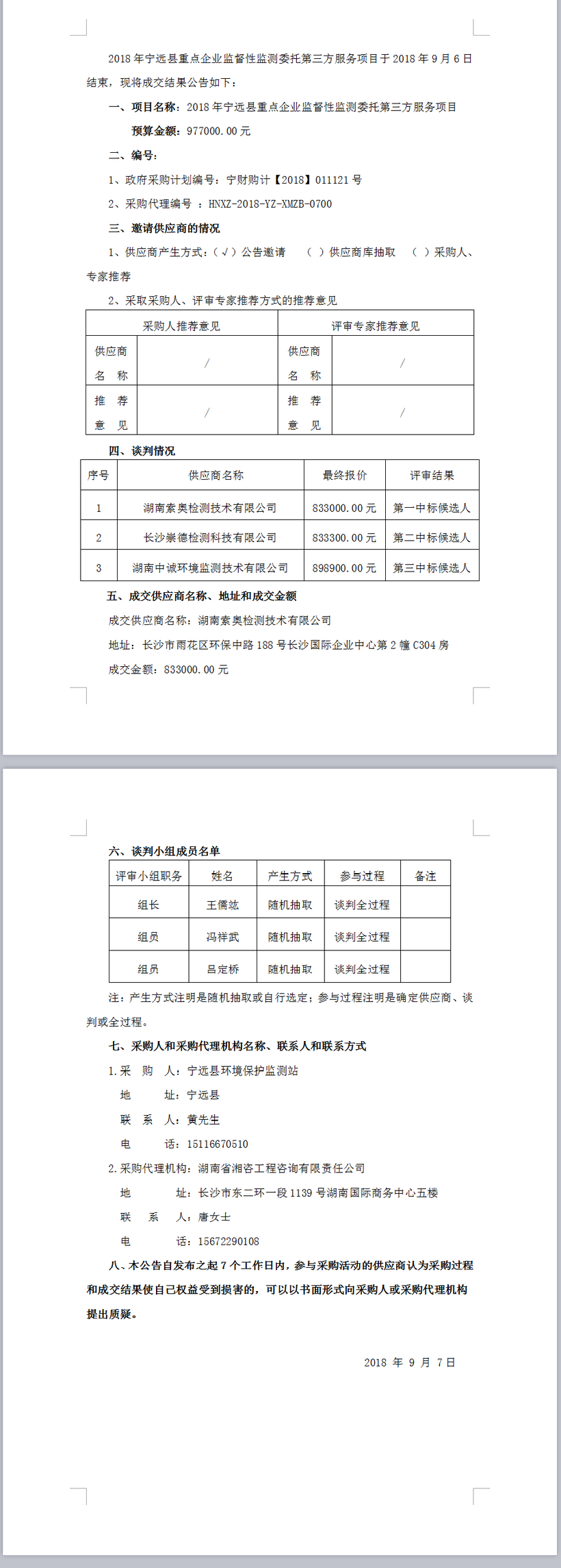 2018年寧遠(yuǎn)縣重點(diǎn)企業(yè)監(jiān)督性監(jiān)測(cè)委托第三方服務(wù)項(xiàng)目競(jìng)爭(zhēng)性談判成交結(jié)果公告