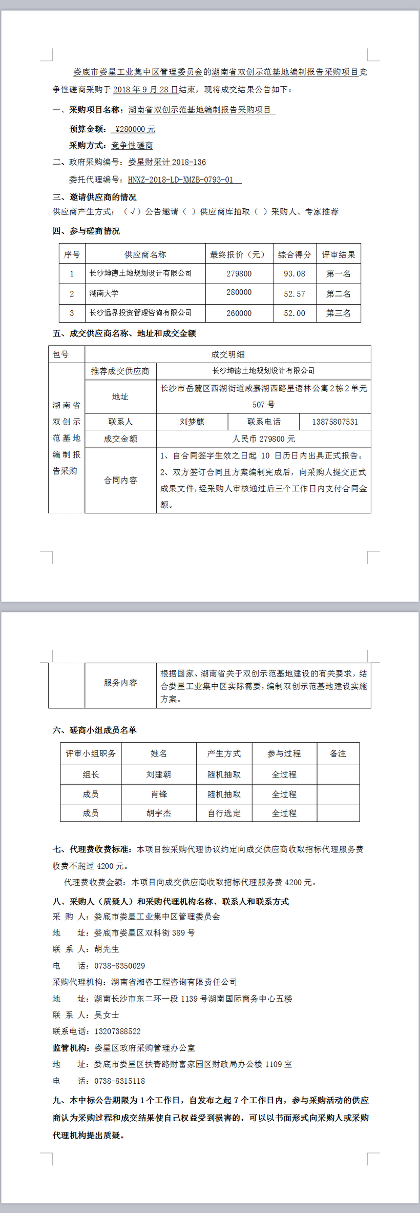 湖南省雙創(chuàng)示范基地編制報(bào)告采購項(xiàng)目競爭性磋商成交結(jié)果公告