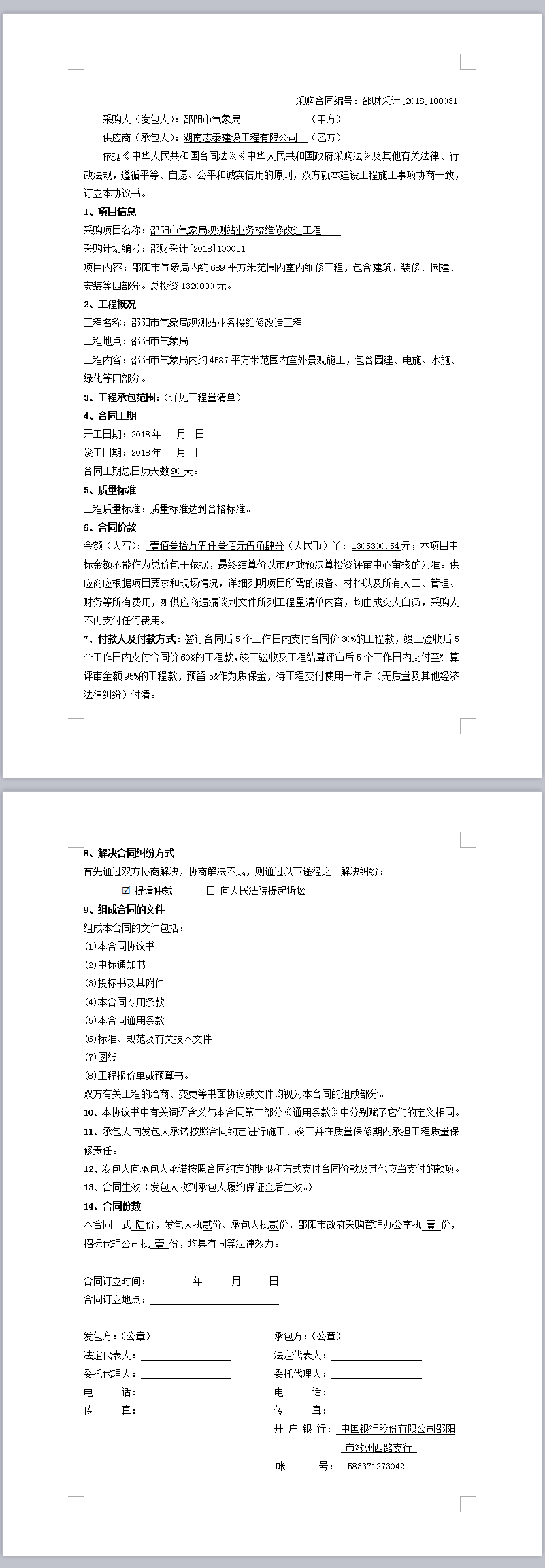 邵陽市氣象局觀測站業(yè)務(wù)樓維修改造工程政府采購合同公示