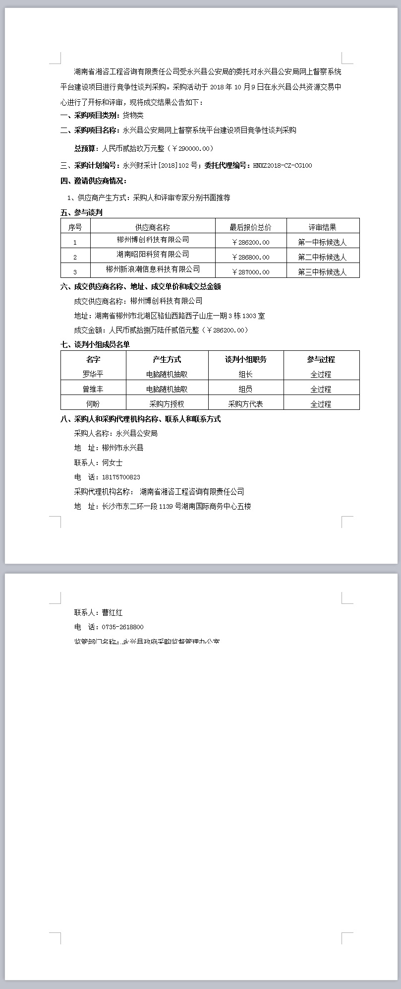 永興縣公安局網(wǎng)上督察系統(tǒng)平臺(tái)建設(shè)項(xiàng)目競(jìng)爭(zhēng)性談判采購成交公告
