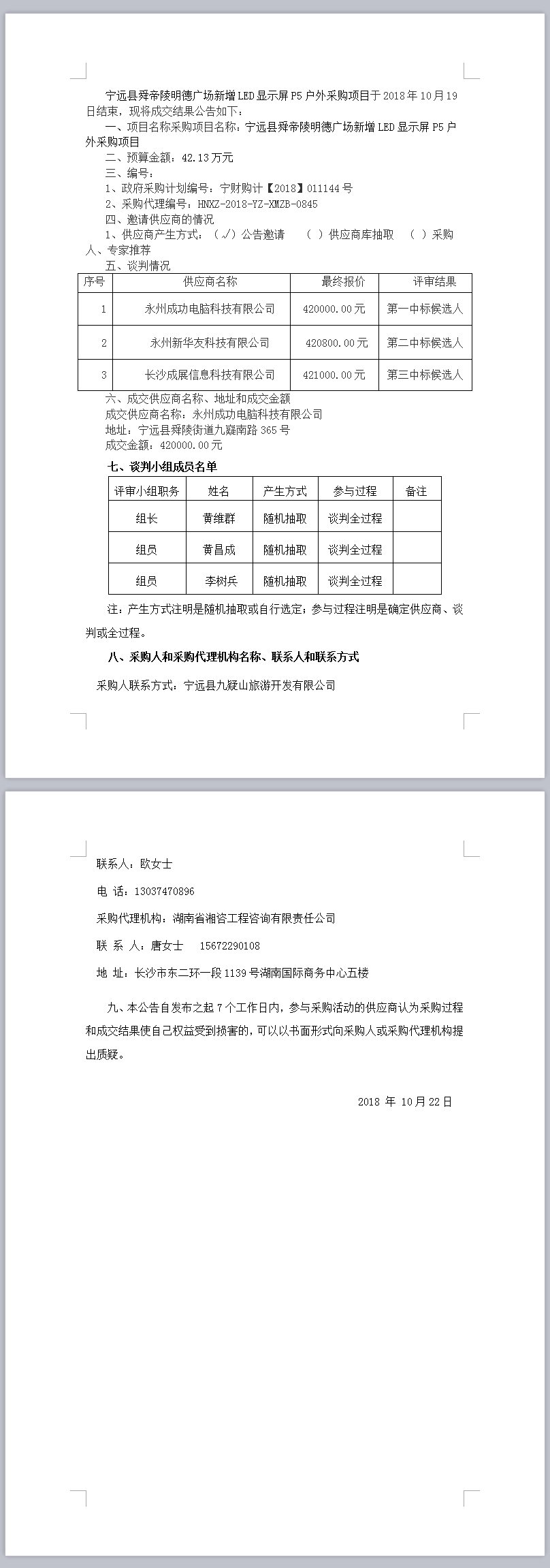 寧遠(yuǎn)縣舜帝陵明德廣場新增LED顯示屏P5戶外采購項目競爭性談判成交結(jié)果公告