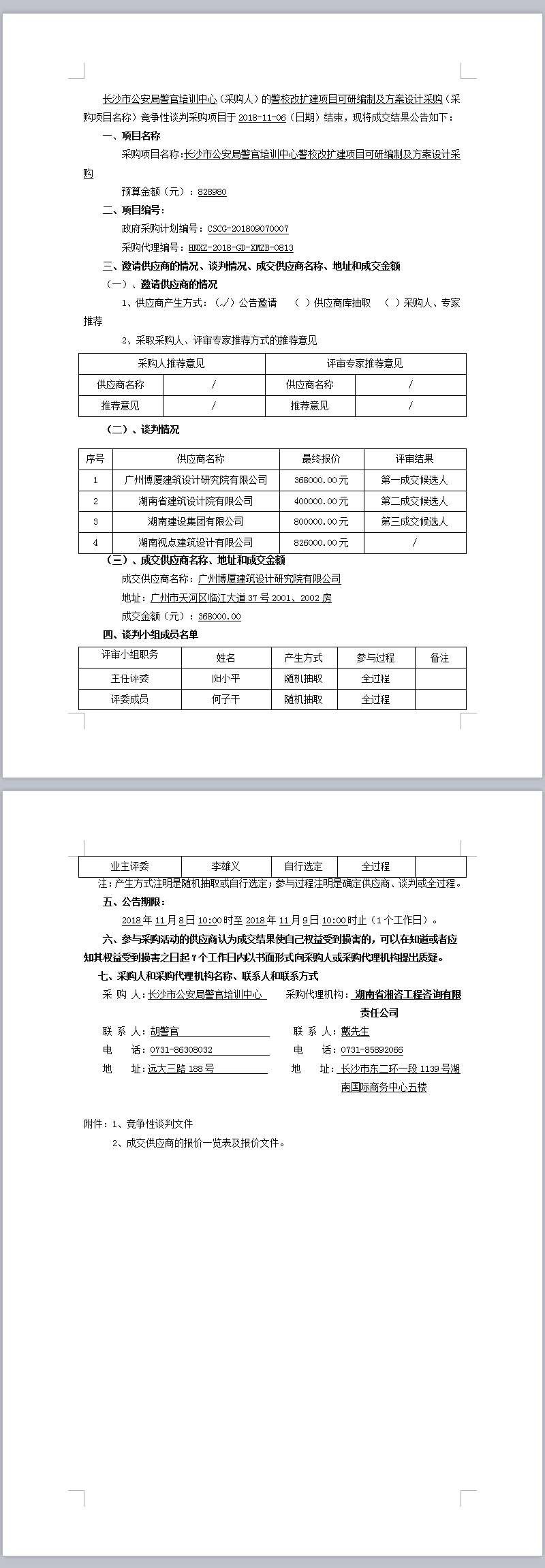 長(zhǎng)沙市公安局警官培訓(xùn)中心警校改擴(kuò)建項(xiàng)目可研編制及方案設(shè)計(jì)采購(gòu)競(jìng)爭(zhēng)性談判成交結(jié)果公告