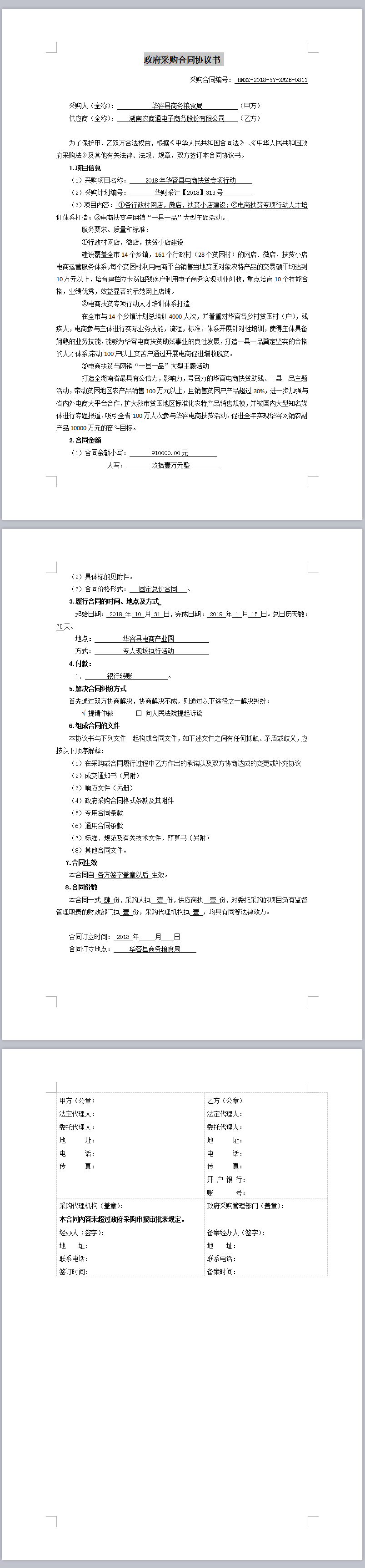 2018年華容縣電商扶貧專項(xiàng)行動(dòng)政府采購合同協(xié)議書
