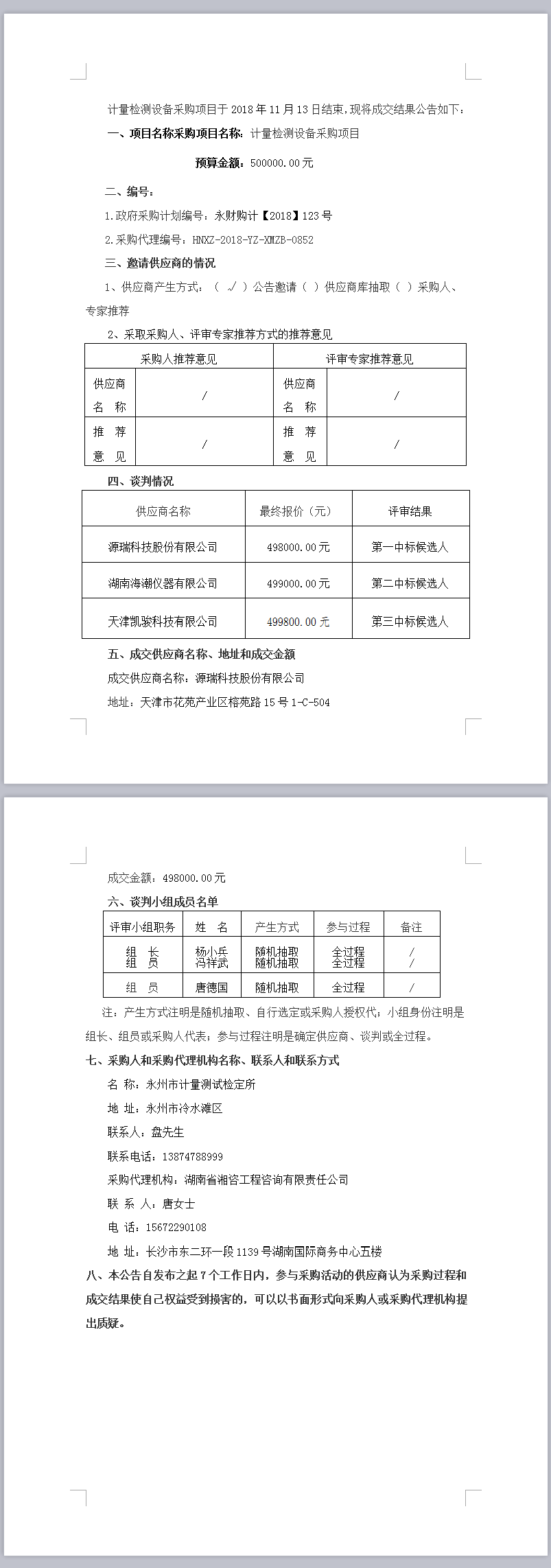計(jì)量檢測(cè)設(shè)備采購(gòu)項(xiàng)目 競(jìng)爭(zhēng)性談判成交公告