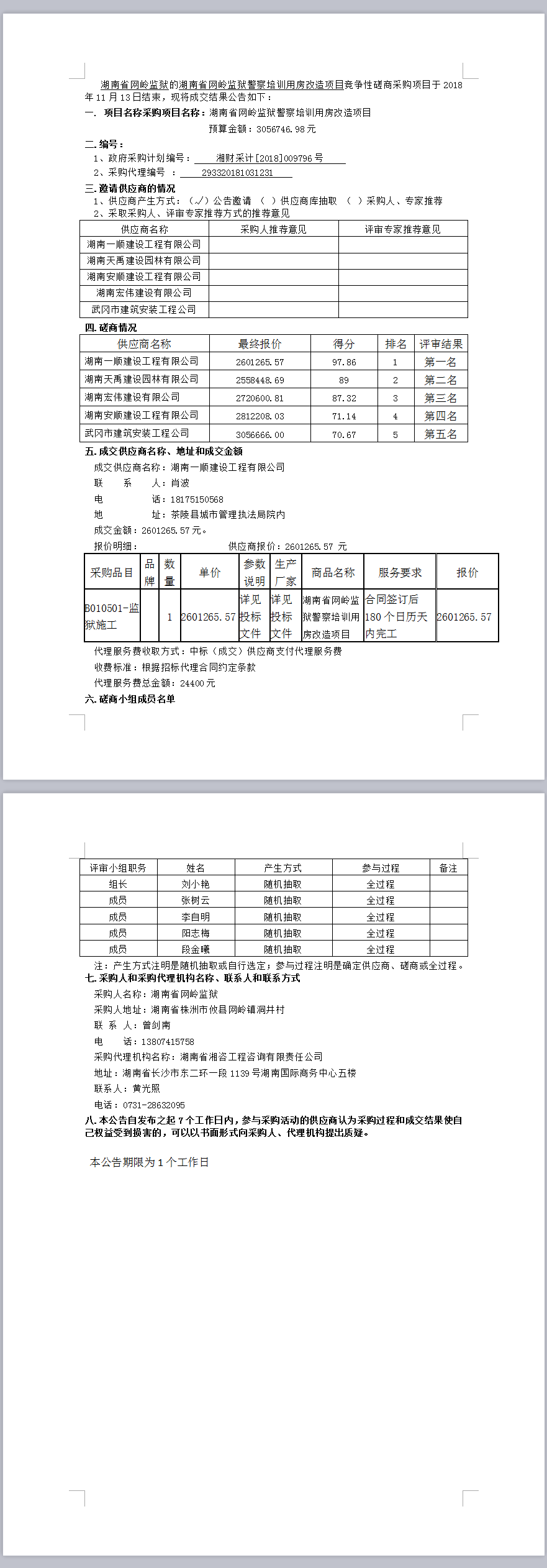 湖南省網(wǎng)嶺監(jiān)獄警察培訓用房改造項目競爭性磋商成交公告