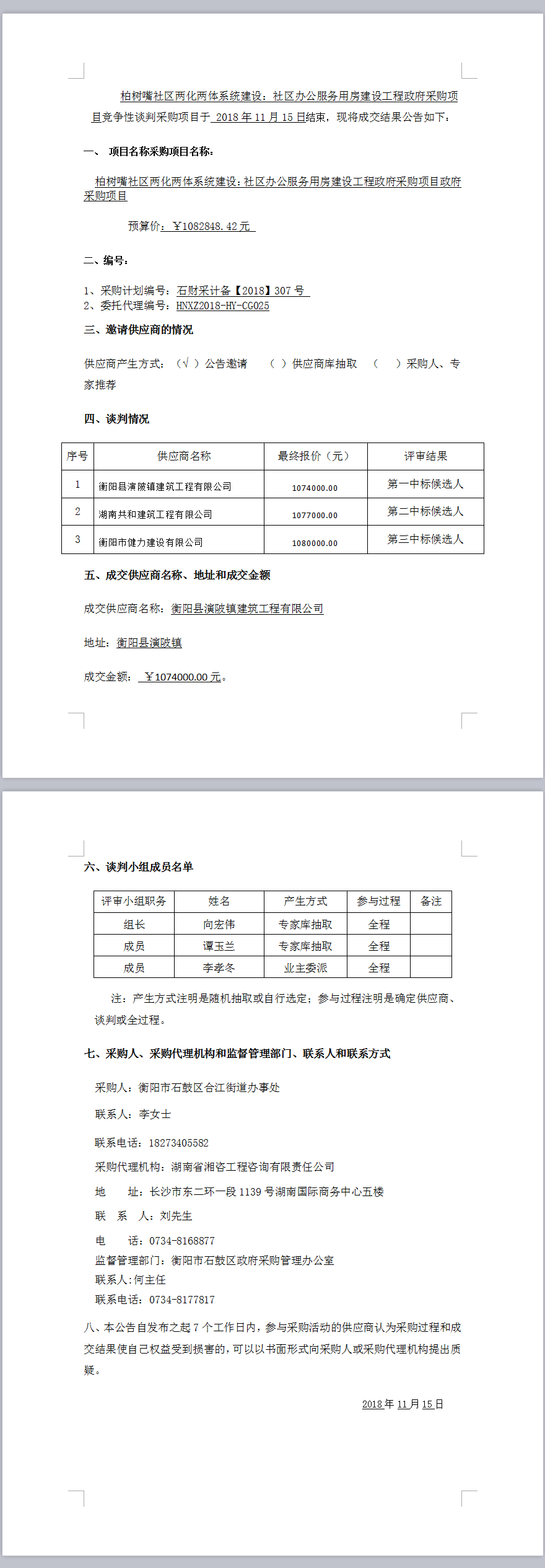 柏樹(shù)嘴社區(qū)兩化兩體系統(tǒng)建設(shè):社區(qū)辦公服務(wù)用房建設(shè)工程政府 采購(gòu)項(xiàng)目談判成交公告