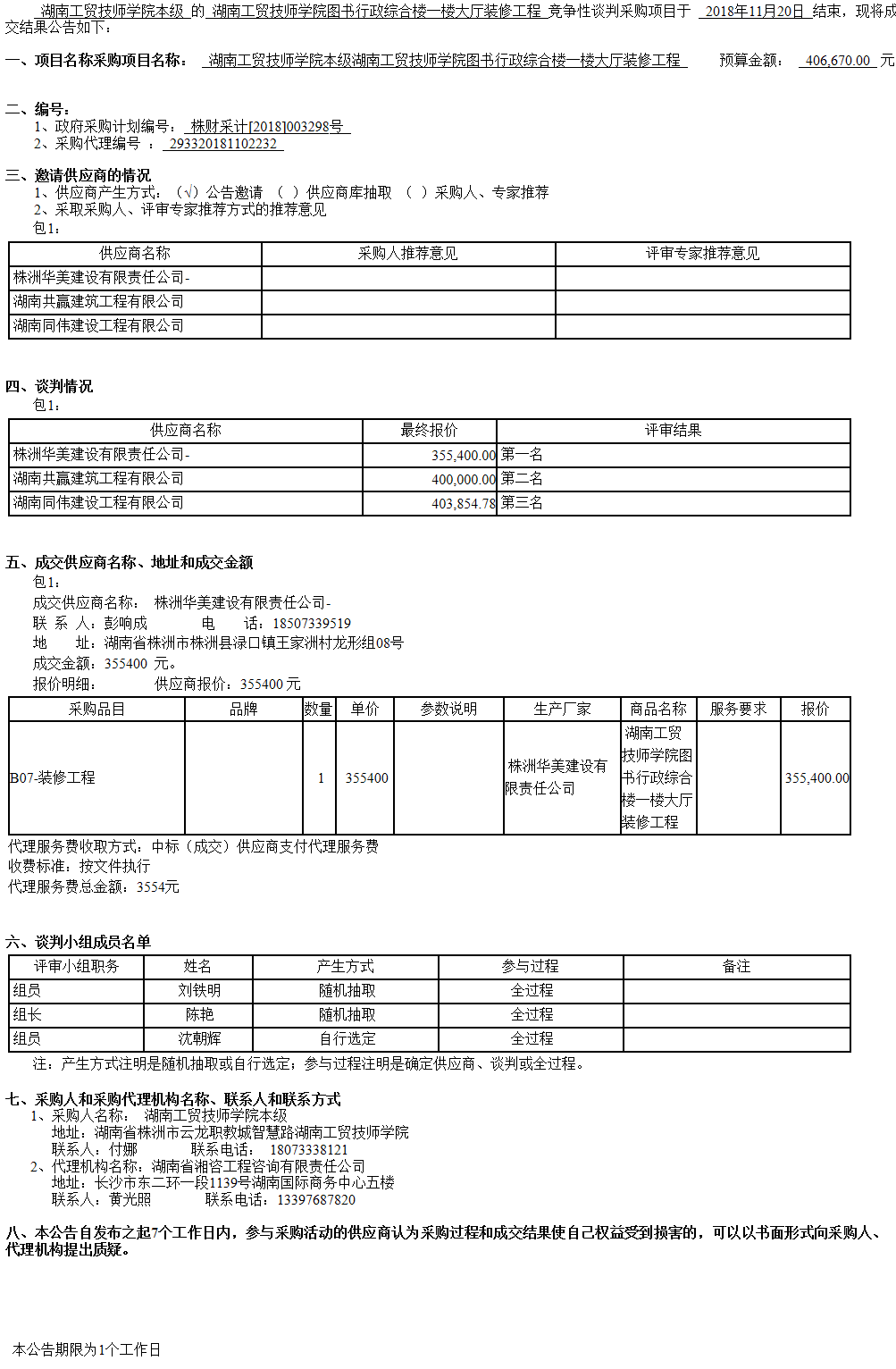 湖南工貿(mào)技師學(xué)院圖書行政綜合樓一樓大廳裝修工程成交結(jié)果公告