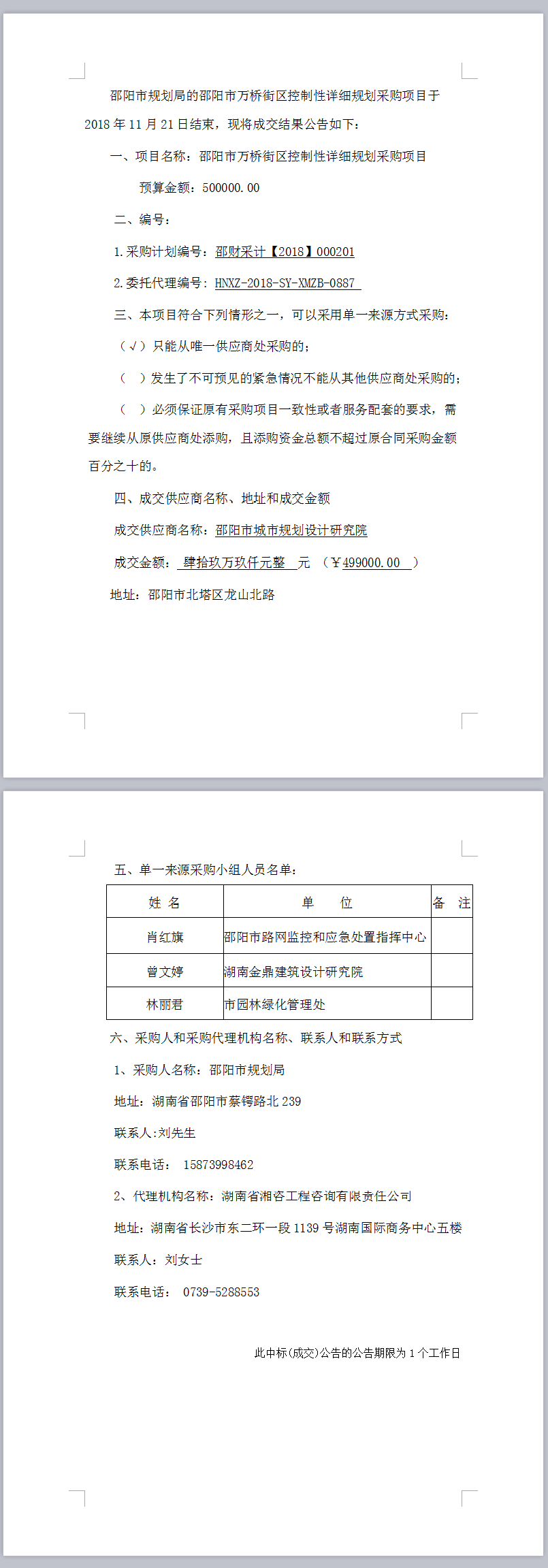 邵陽市萬橋街區(qū)控制性詳細(xì)規(guī)劃采購項(xiàng)目 單一來源成交公告