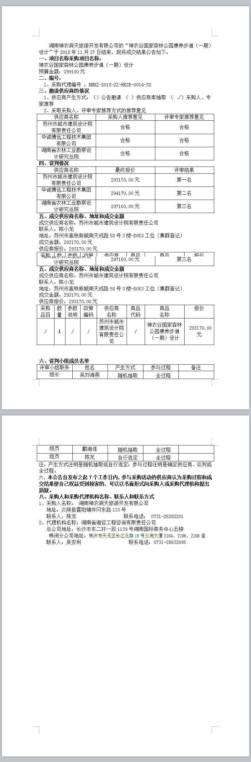 神農(nóng)谷國(guó)家森林公園康養(yǎng)步道(一期)設(shè)計(jì)競(jìng)爭(zhēng)性談判成交公告