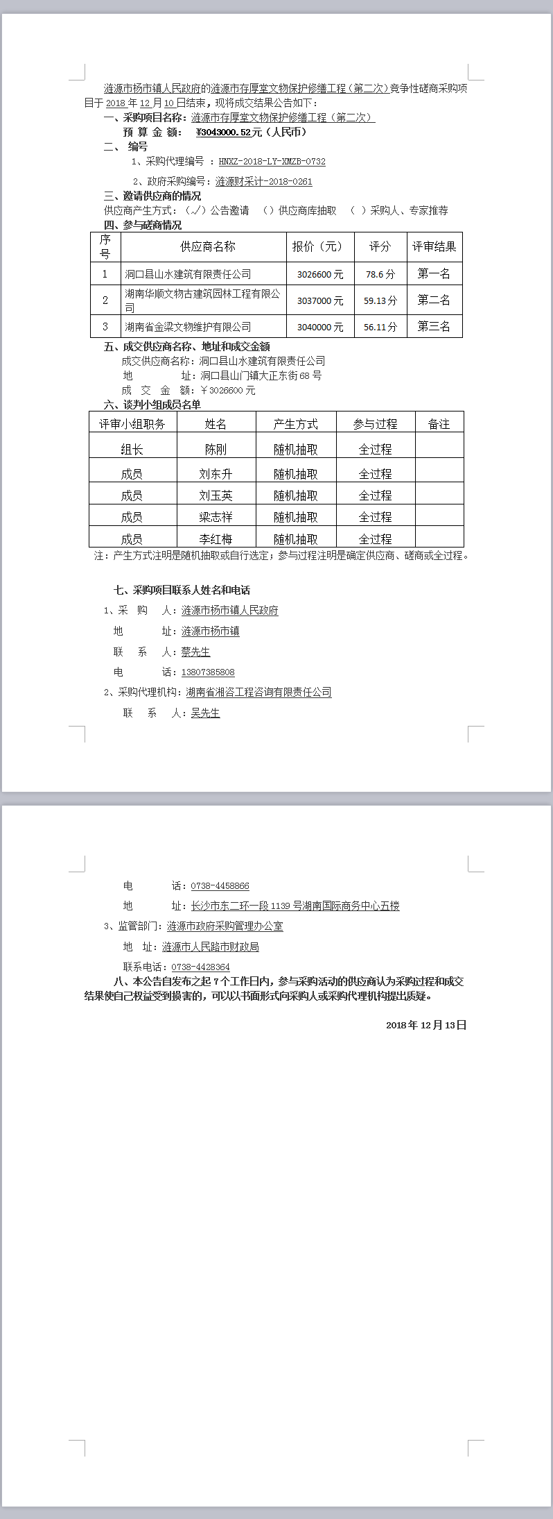 漣源市存厚堂文物保護(hù)修繕工程(第二次) 競爭性磋商成交結(jié)果公告