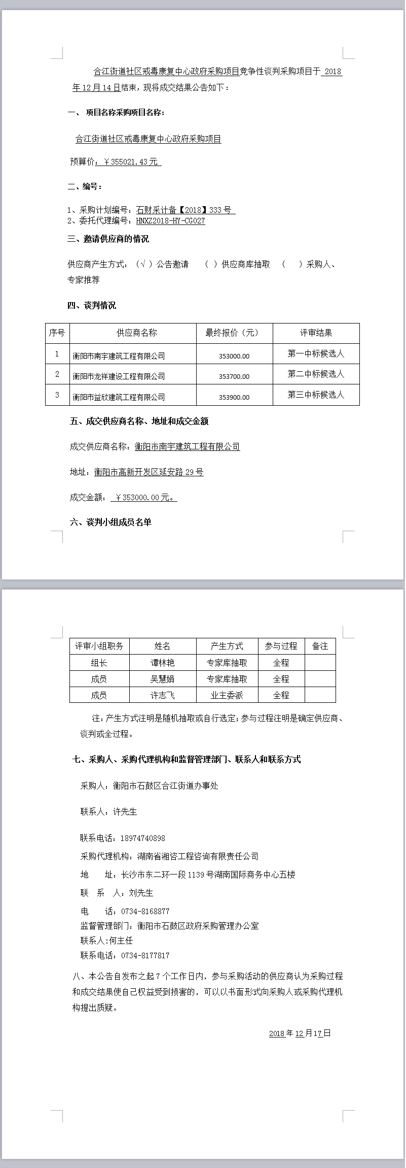 合江街道社區(qū)戒毒康復中心政府采購項目成交公告