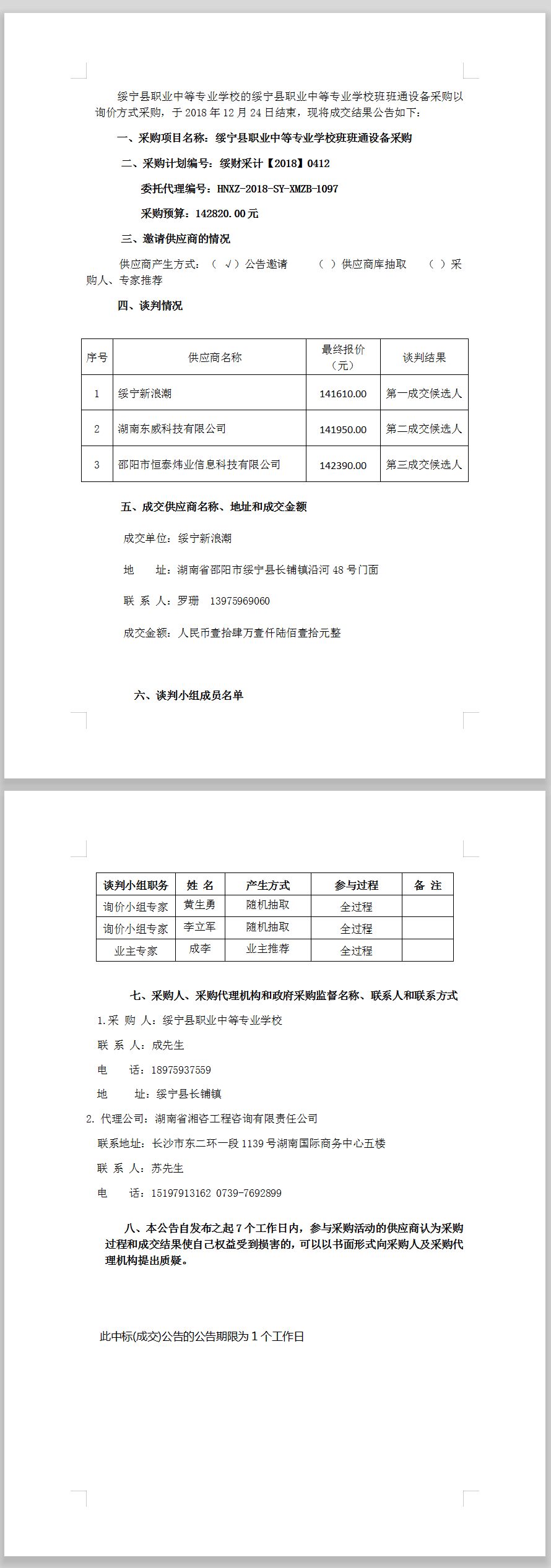 綏寧縣職業(yè)中等專業(yè)學(xué)校班班通設(shè)備采購成交公告