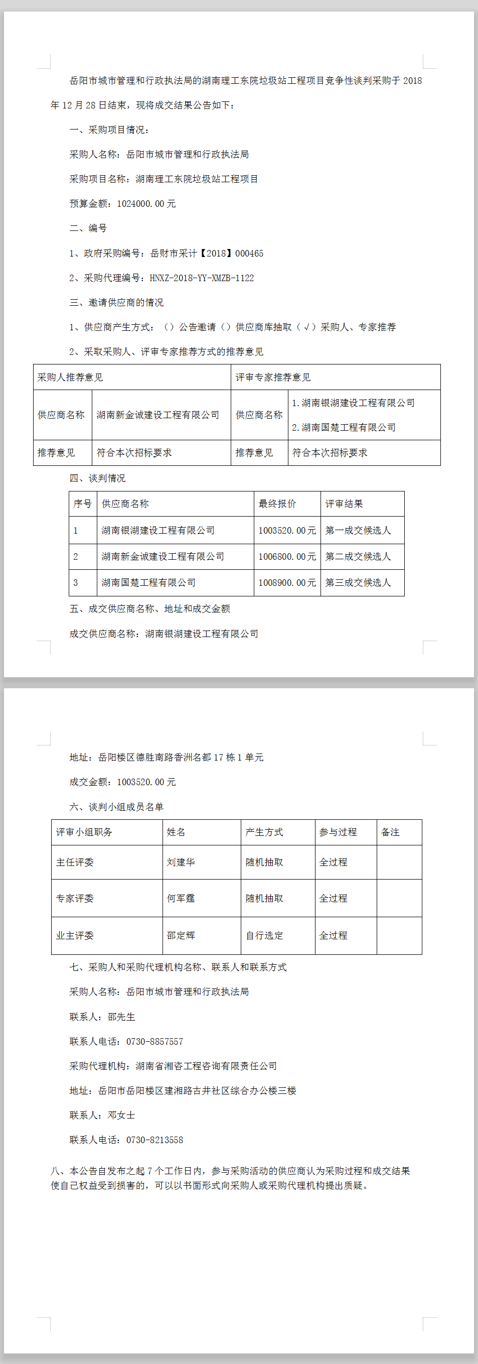 湖南理工東院垃圾站工程項(xiàng)目競爭性談判成交結(jié)果公告