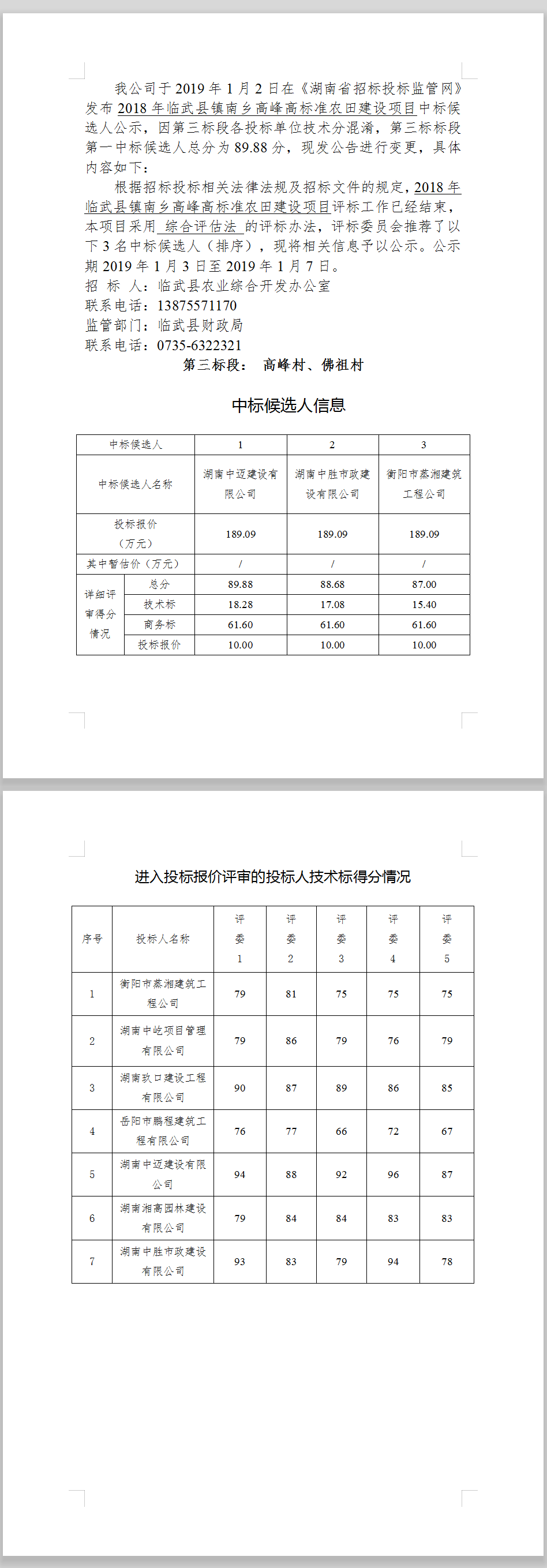 2018年臨武縣鎮(zhèn)南鄉(xiāng)高峰高標(biāo)準(zhǔn)農(nóng)田建設(shè)項(xiàng)目中標(biāo)候選人公示(變更)