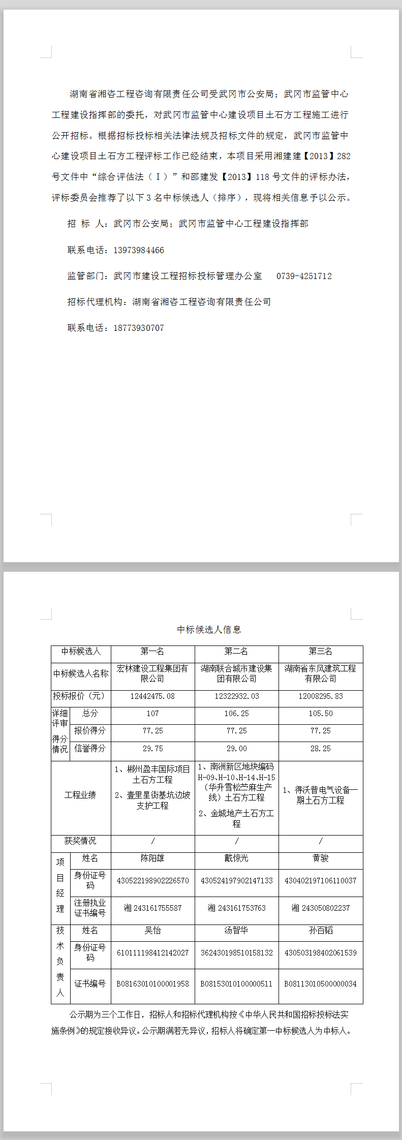 武岡市監(jiān)管中心建設(shè)項(xiàng)目土石方工程施工中標(biāo)候選人公示