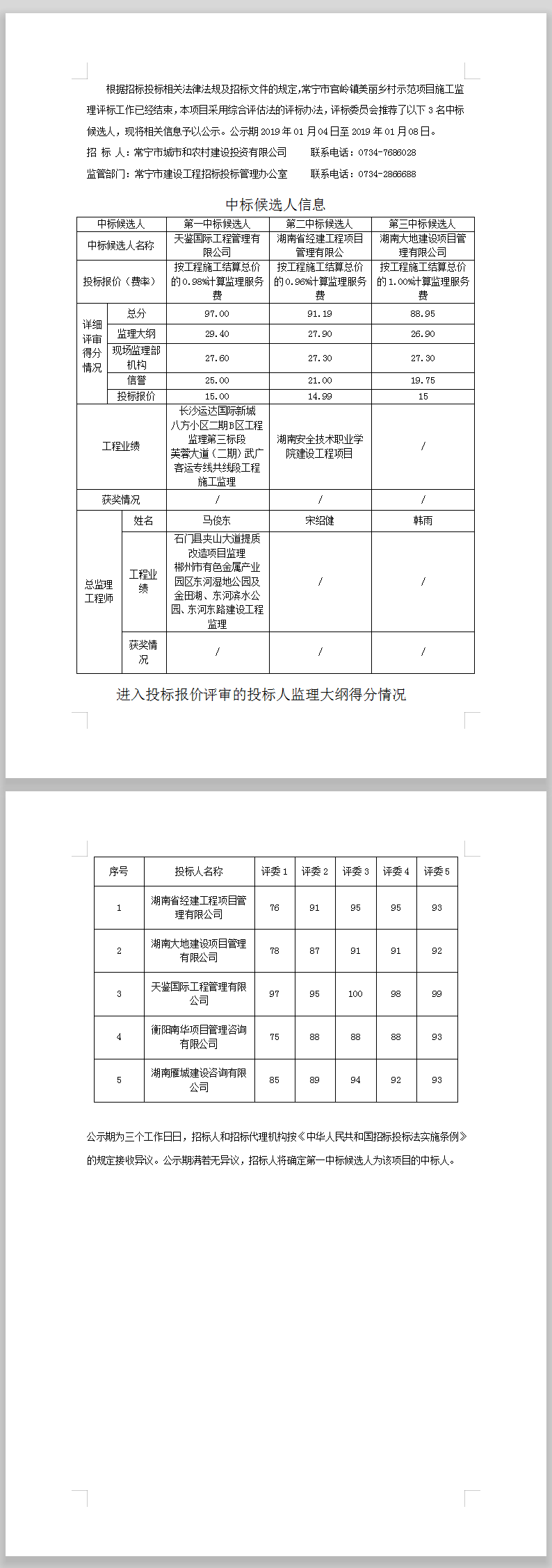常寧市官嶺鎮(zhèn)美麗鄉(xiāng)村示范項目施工監(jiān)理中標候選人公示