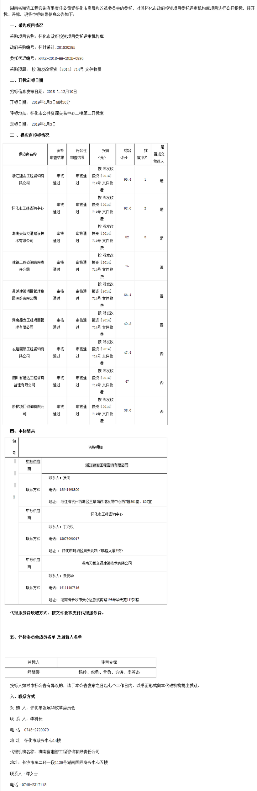懷化市政府投資項目委托評審機(jī)構(gòu)庫 中標(biāo)公告