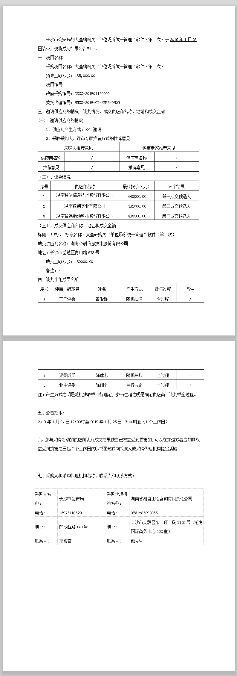 大基礎(chǔ)購買“單位場所統(tǒng)一管理”軟件(第二次) 結(jié)果公告