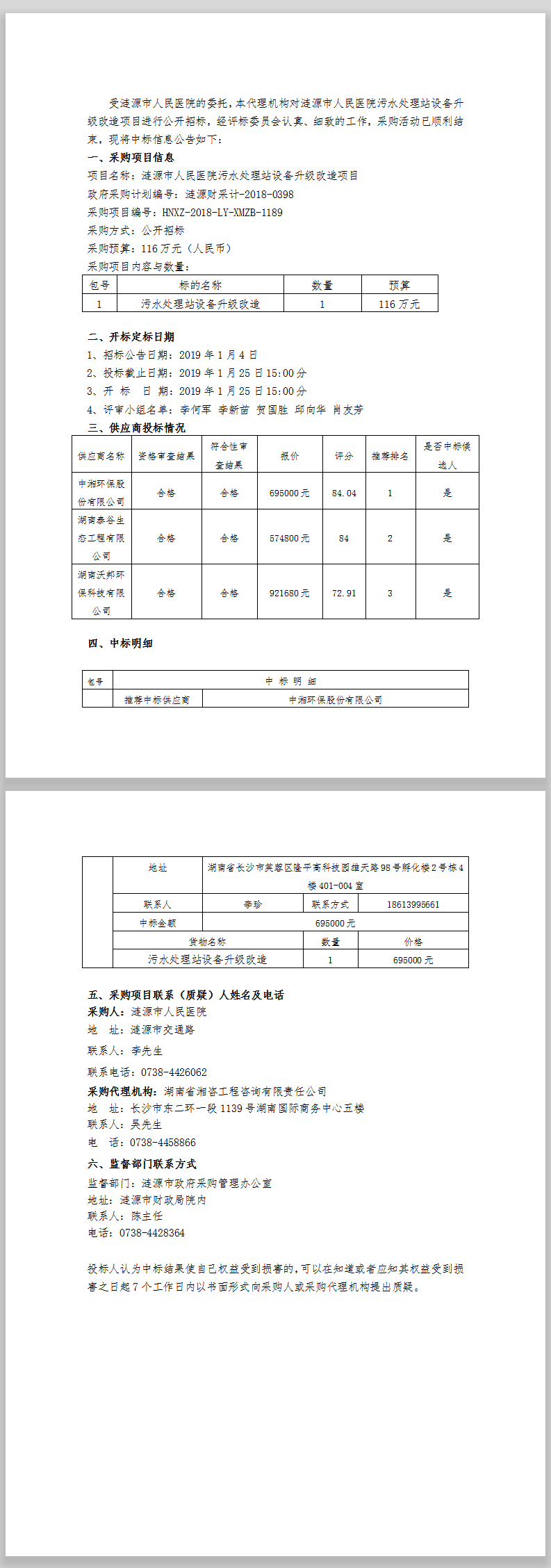 漣源市人民醫(yī)院污水處理站設(shè)備升級(jí)改造項(xiàng)目 中標(biāo)結(jié)果公告