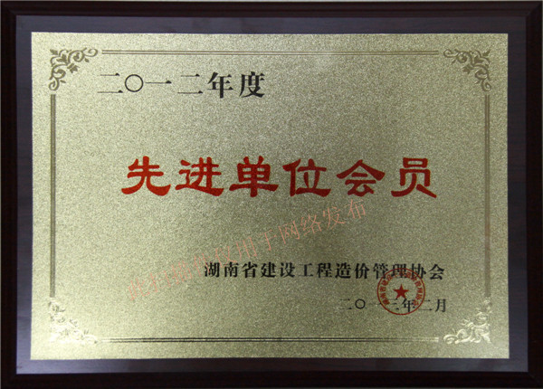 熱烈慶祝我司榮獲湖南省造價(jià)工程管理協(xié)會(huì)2012年度先進(jìn)單位會(huì)員