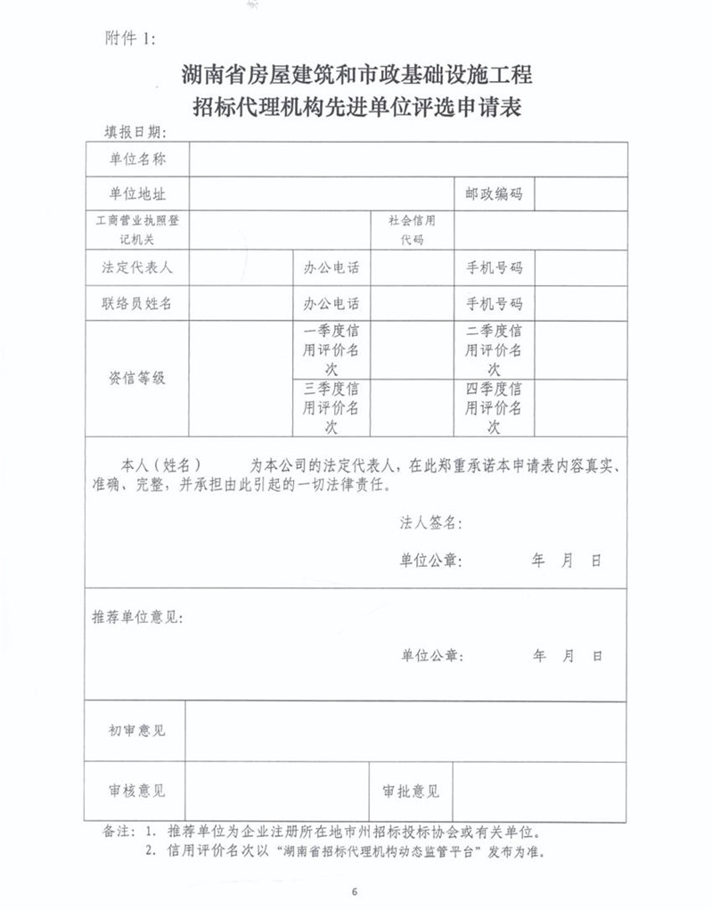 附件1:湖南省房屋建筑和市政基礎(chǔ)設(shè)施工程招標(biāo)代理機構(gòu)先進單位評選申請表