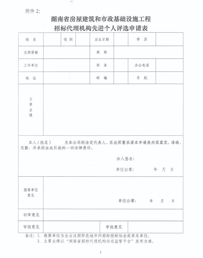 附件2:湖南省房屋建筑和市政基礎(chǔ)設(shè)施工程招標(biāo)代理機構(gòu)先進個人評選申請表