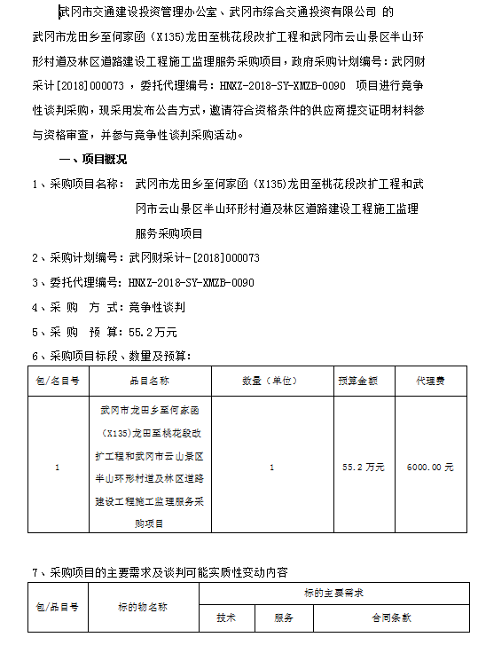 武岡市龍?zhí)镟l(xiāng)至何家函(X135)龍?zhí)镏撂一ǘ胃臄U工程和武岡市云山景區(qū)半山環(huán)形村道及林區(qū)道路建設(shè)工程施工監(jiān)理服務采購項目競爭性談判邀請公告
