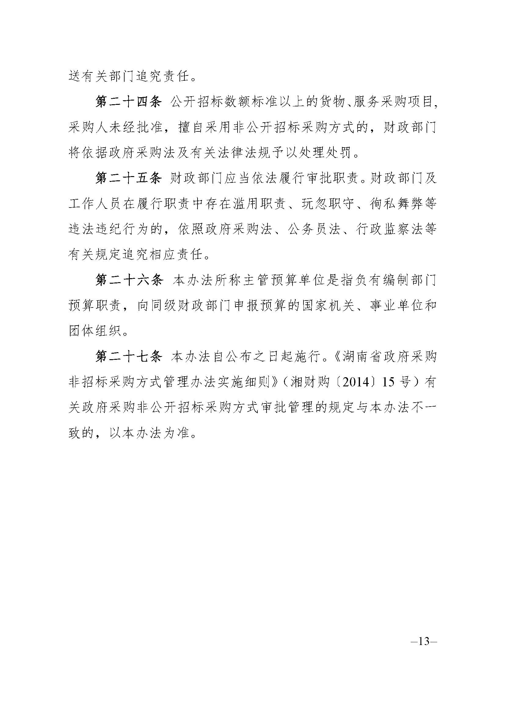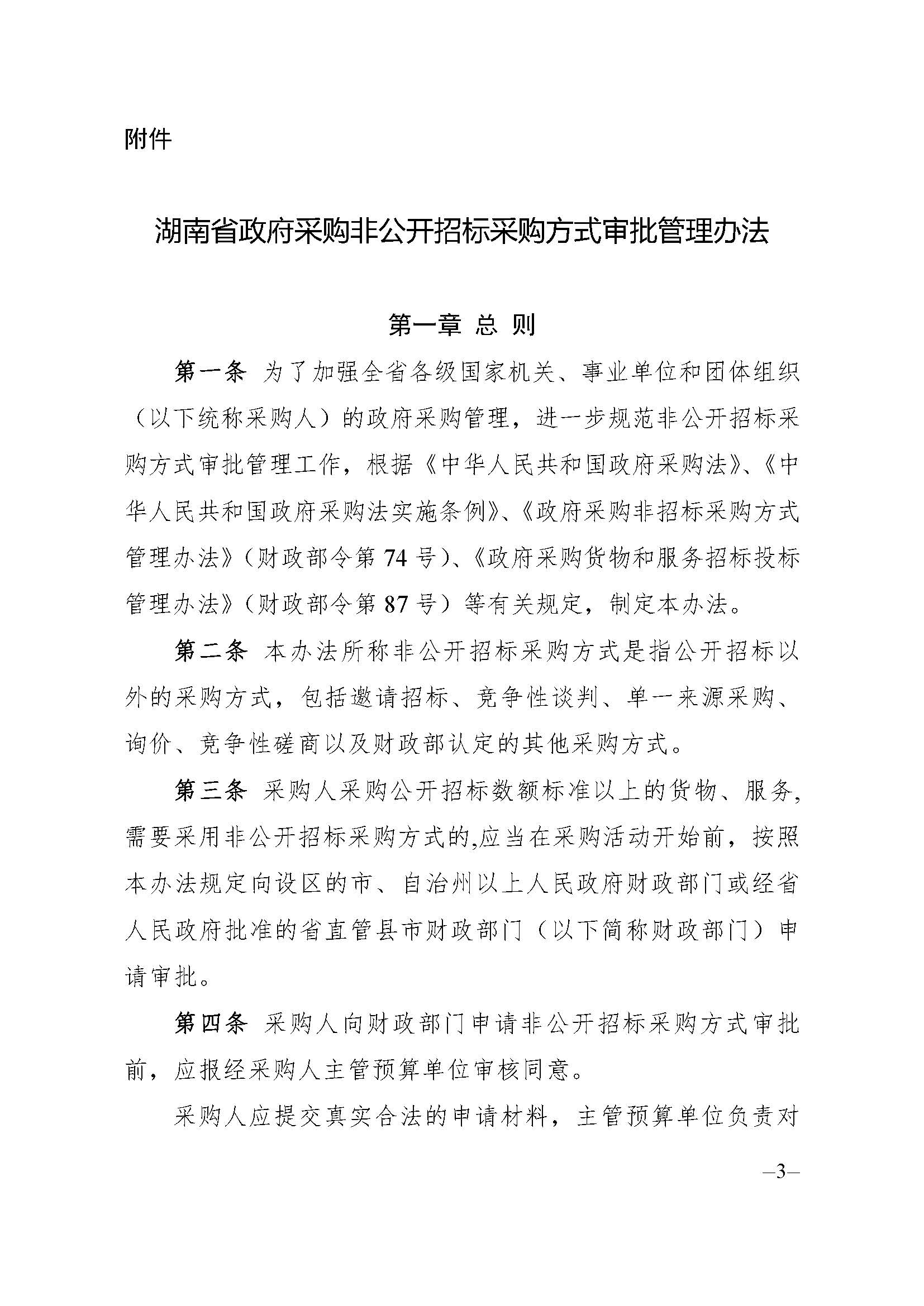 湖南省財(cái)政廳關(guān)于印發(fā)《湖南省政府采購 非公開招標(biāo)采購方式審批管理辦法》的通知