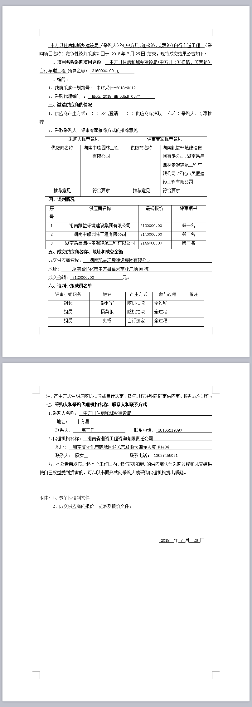 中方縣住房和城鄉(xiāng)建設(shè)局+中方縣(迎松路,芙蓉路)自行車道工程競(jìng)爭(zhēng)性談判成交結(jié)果公告