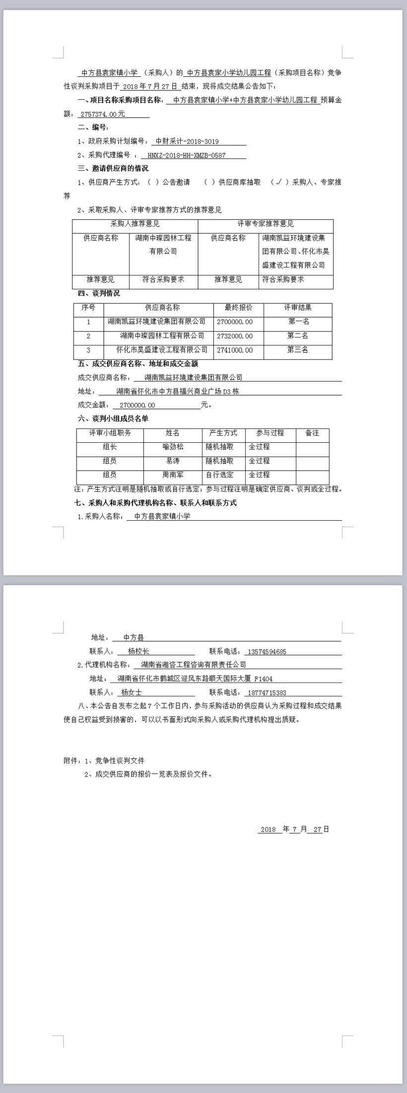 中方縣袁家鎮(zhèn)小學(xué)+中方縣袁家小學(xué)幼兒園工程競爭性談判成交結(jié)果公告