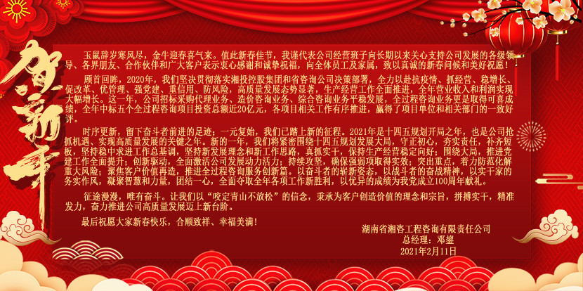 湖南省湘咨工程咨詢有限責任公司2021年新春賀詞