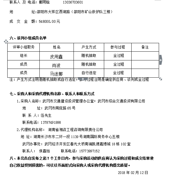 武岡市龍?zhí)镟l(xiāng)至何家函(X135)龍?zhí)镏撂一ǘ胃臄U(kuò)工程和武岡市云山景區(qū)半山環(huán)形村道及林區(qū)道路建設(shè)工程施工監(jiān)理服務(wù)采購項(xiàng)目 競爭性談判成交結(jié)果公告